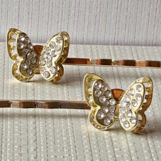 Gold Butterfly Hair Pins – Sparkly Rhinestone Wedding Clips for Women