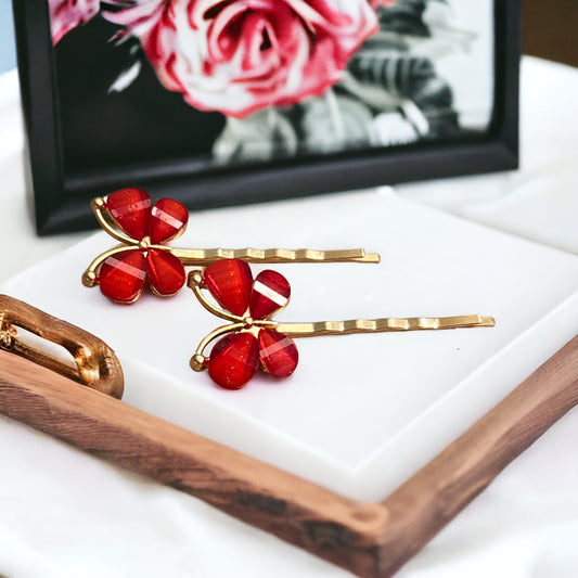Red Resin Butterfly Hair Pins – Set of 2 Boho Spring Accessories
