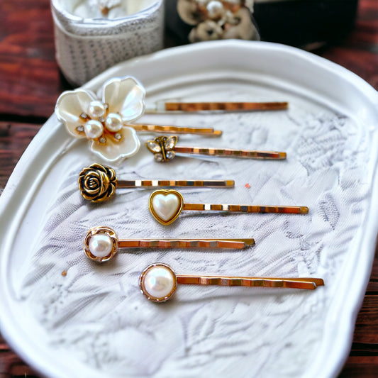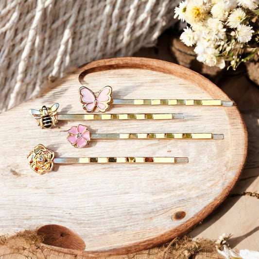 Floral & Butterfly Hair Pin Set – Gold Bobby Pins in Spring Colors