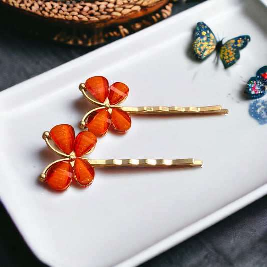 Orange Butterfly Hair Pins – Set of 2 Boho Spring Accessories