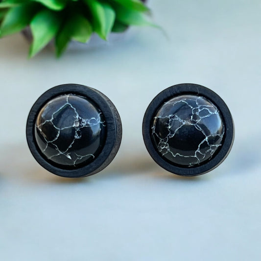 Black Stone Earrings – Handmade Bold Minimalist Wood Jewelry
