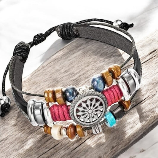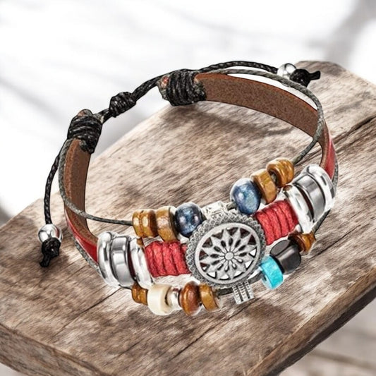 Red Boho Wrap Bracelet – Faux Leather Adjustable Bracelet for Her