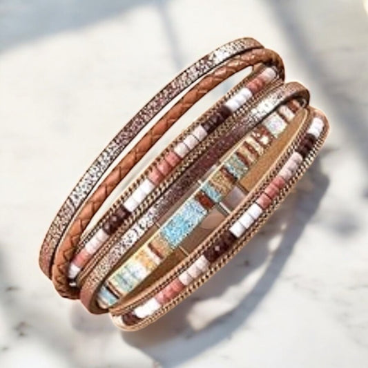 Multicolor Boho Wrap Bracelet – Layered Beaded Bracelet with Clasp