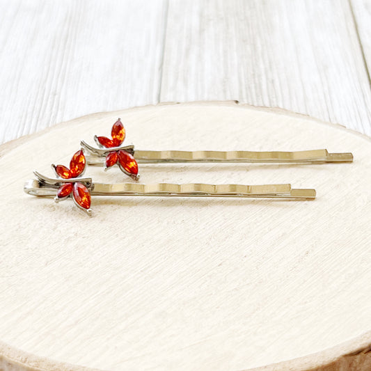 Orange Dragonfly Hair Pins – Whimsical Rhinestone Bobby Pins for Women
