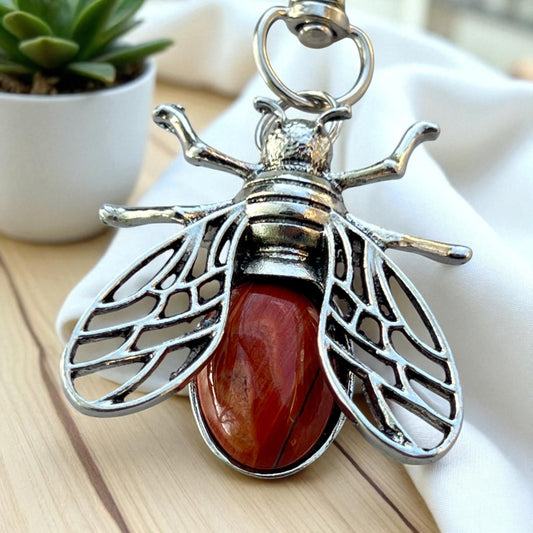 Red Jasper Bee Purse Charm – Silver Boho Bag Keychain Accessory
