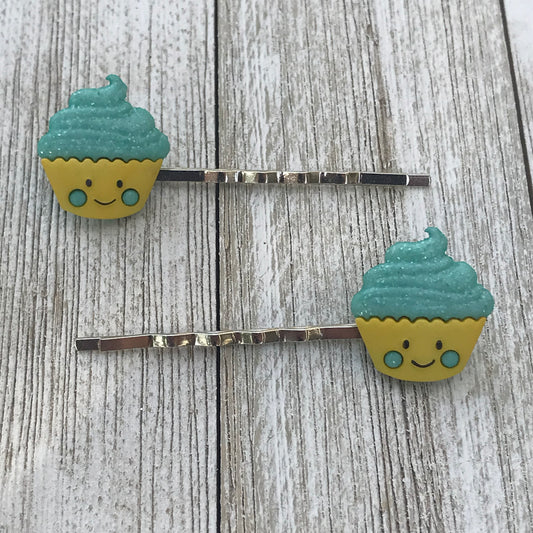 Cupcake Hair Pins - Set of 2 Glitter Bobby Pins