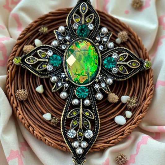 Ornate Cross Purse Charm – Vintage Bronze Keychain with Rhinestones