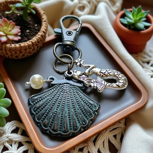 Mermaid & Seashell Purse Charm – Coastal Keychain with Pearl Accent