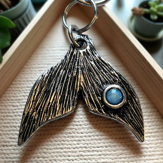 Whale Tail Purse Charm – Nautical Ocean Keychain with Blue Gem