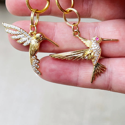 Hummingbird Purse Charms – Gold Crystal Bird Keychains with Bling