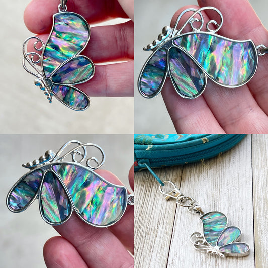 Silver Butterfly Zipper Pull Charm with Natural Abalone