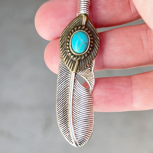 Turquoise Silver Feather Western Zipper Pull Keychain Charm