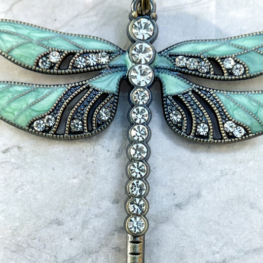 Dragonfly Purse Charm – Mint & Rhinestone Boho Bag Accessory