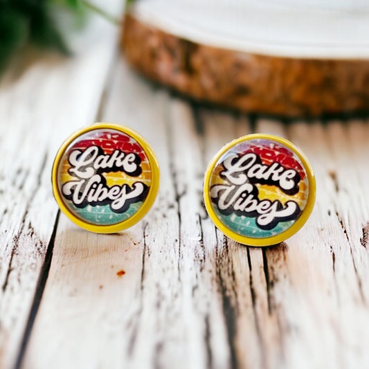 Lake Vibes Stud Earrings – Retro Summer Statement Jewelry in Yellow