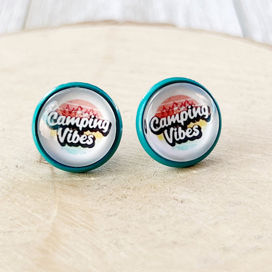 Camping Vibes Stud Earrings – Teal Stainless Steel