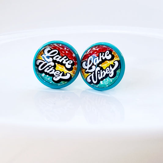 Teal Stud Earrings with 'Lake Vibes' - Stylish & Vibrant Accessories