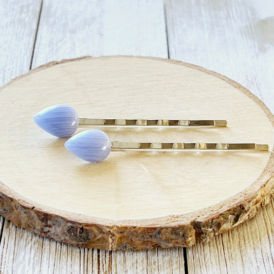 Blue Lace Agate Stone Hair Pins - Natural Hair Accessories