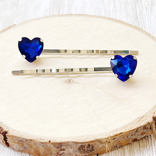 Blue Rhinestone Heart Hair Pins - Elegant Rhinestone Accessories