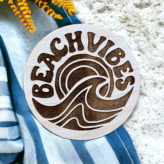 Beach Vibes Magnet – Coastal Boho Wood Decor for Summer Lovers