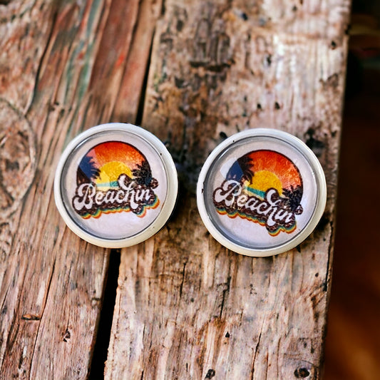 Beachin’ Sunset Stud Earrings – Retro Tropical Summer Jewelry with White Trim