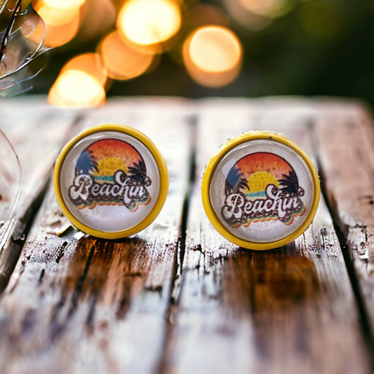 Beachin’ Sunset Stud Earrings – Tropical Retro Summer Jewelry with Yellow