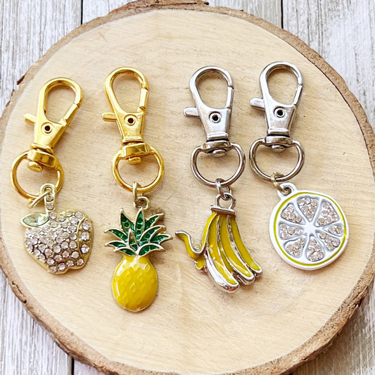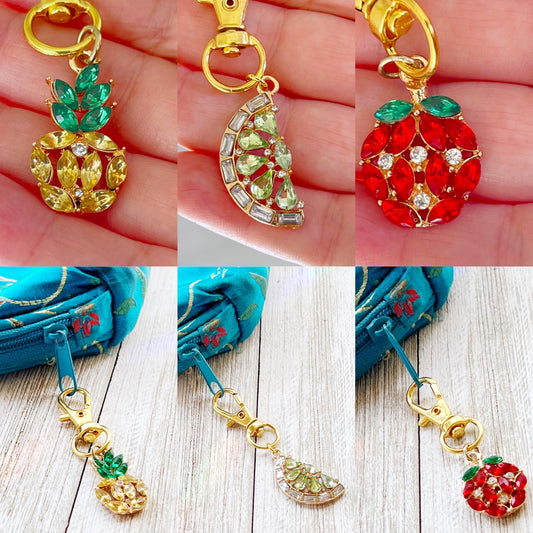 Fruit Zipper Pull Keychain Charm with Rhinestones