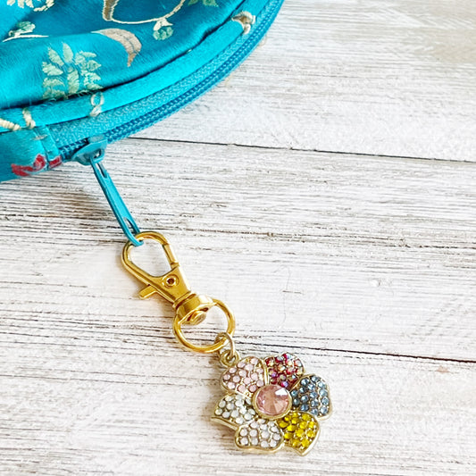 Flower Zipper Pull Keychain Charm with Rhinestones