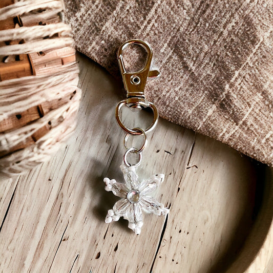 Beaded Snowflake Purse Charm Keychain - Winter Accessory