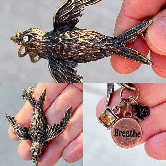 Bird Purse Keychain Charm with Breathe, Rhinestone & Flower Accents