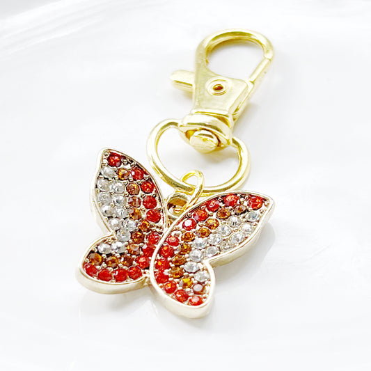 Red & Orange Butterfly Purse Charm with Rhinestones - Stylish Accessory for Your Bag