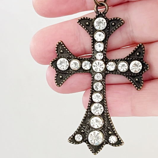 Rhinestone Cross Purse Charm – Vintage Bronze Crystal Keychain