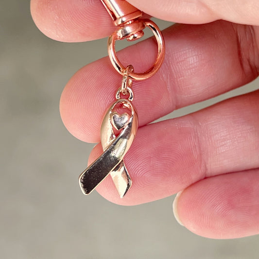 Rose Gold Cancer Awareness Ribbon Purse Charm