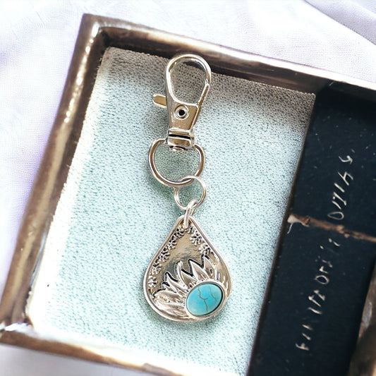 Turquoise Teardrop Purse Charm – Boho Southwest Silver Keychain