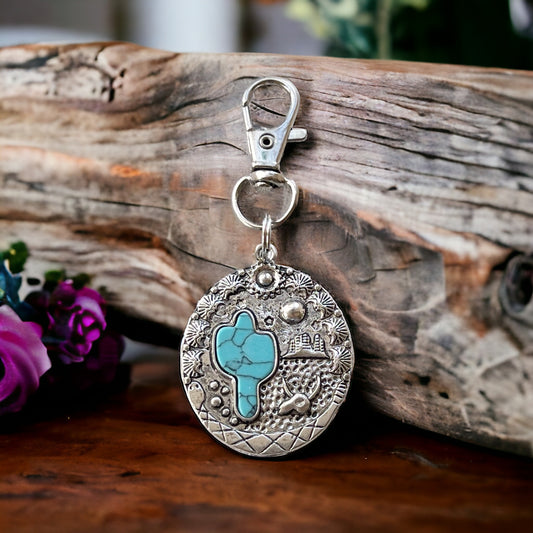 Turquoise Western Cactus Zipper Pull: Chic Southwestern Handbag Charm