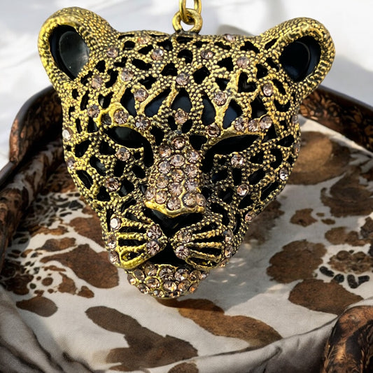 Rhinestone Cheetah Head Purse Charm – Bold Animal Print Accessory for Women