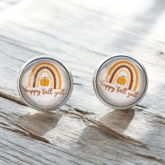 Happy Fall Y’all Stud Earrings – Rainbow Pumpkin Autumn Jewelry in Silver