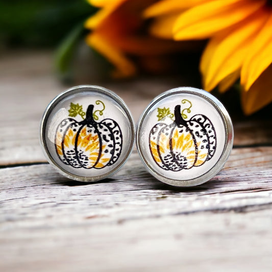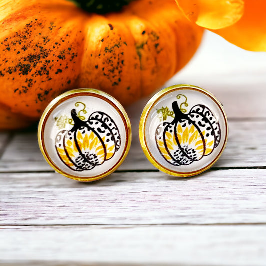 Pumpkin & Sunflower Gold Stud Earrings: Unique Autumn Accents for Your Style