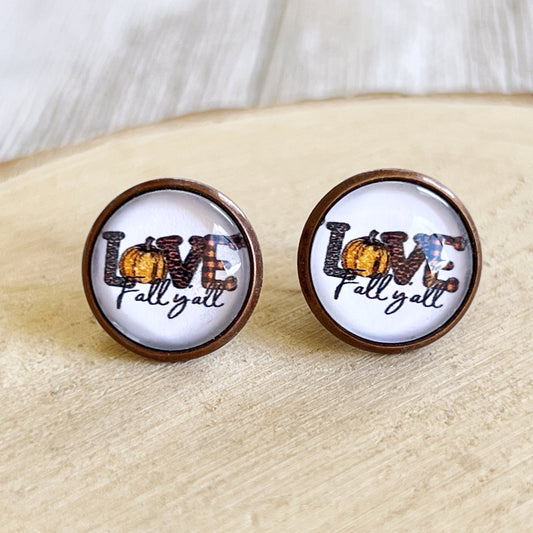 Love Fall Y’all Pumpkin Stud Earrings – Cute Autumn Bronze Jewelry