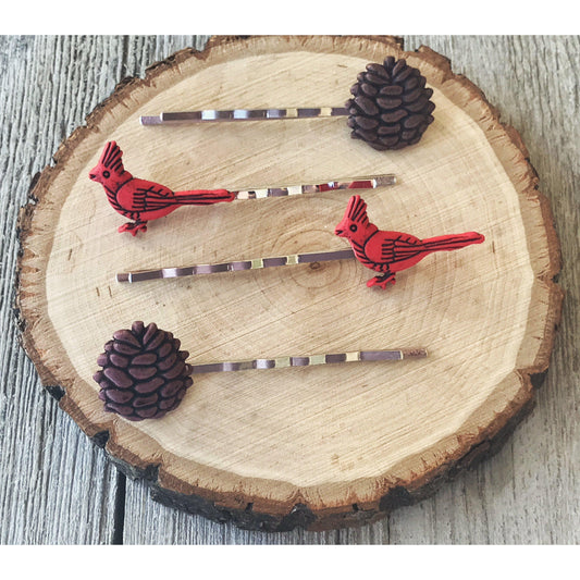 Pinecones & Cardinals Bobby Pins - Boho Fall Hair Pin Set of 4