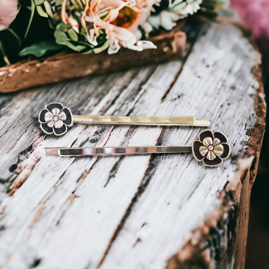 Black & Silver Wildflower Hair Pins - Stylish & Elegant Hair Accessories