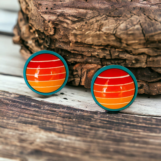 Striped Resin Stud Earrings – Multicolor Round Handmade Boho Jewelry