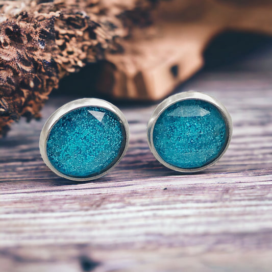 Sky Blue Glitter Acrylic 10mm Stud Earrings: Sparkling Modern Accessories