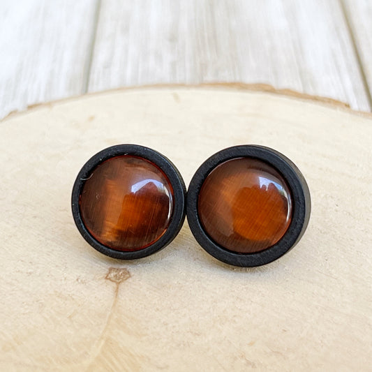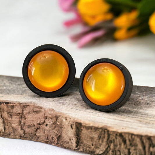 Orange Resin Black Wood Stud Earrings - Unique Accessories