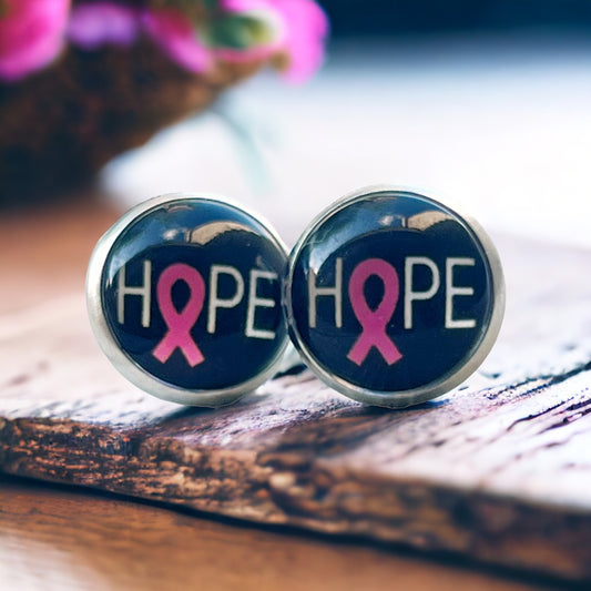 Breast Cancer Awareness 'Hope' Stud Earrings - Stylish & Meaningful Accessories