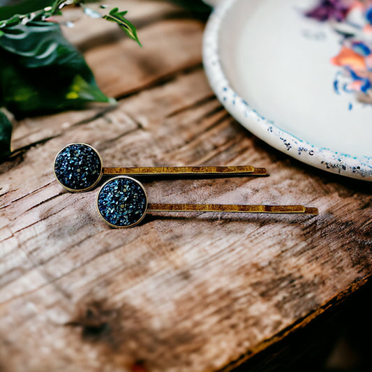 Cobalt Blue Druzy Brass Hair Pins: Elegant & Bold Accessories
