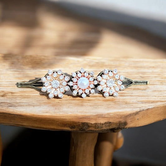 Vintage Pearl Hair Barrette – Handmade Rose Gold Bridal Clip