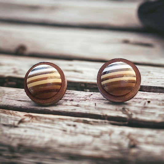 Brown Striped Earrings - Neutral Minimalist Studs with Natural Wood Design | Boho Chic Statement Jewelry