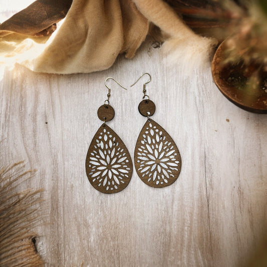 Wood Teardrop Dangle Earrings – Floral Cutout Chic Jewelry