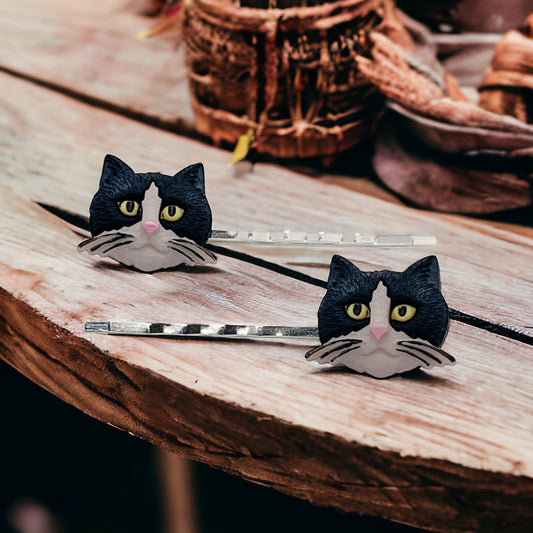 Black & White Cat Hair Pins - Feline-Inspired Accessories