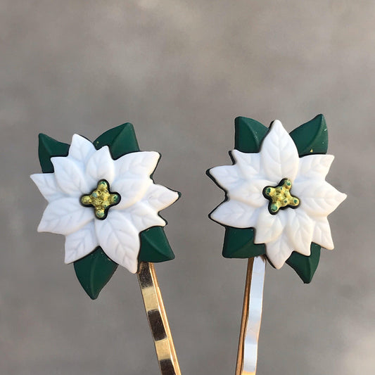 White Flower Chrysanthemum Hair Pins - Festive Accessories